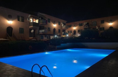 The apartment has 5 beds. New furniture, fully stocked American kitchen, air conditioning, shower, TV sets in all rooms, hot and cold water, ceiling fans, heat-insulated windows, terrace next to the pool (swimming pool open from the end of June to mid-September ---- swimmingpool open from end june until middle september) and sea view. Very large swimming pool, surrounded by olive trees and flower beds. The apartment is located in a residential condominium in peaceful area halfway between the village of realmonte and its famous beach 'Turkish Steps'