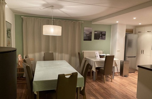 Ground floor: On the ground floor is the large bright living room. The fireplace and heating make every season a pleasant climate in the house. The open kitchen with dining area is equipped with dishwasher, oven, refrigerator equipped with a freezer. The large bathroom with shower and bath. Opposite is a separate toilet with sink.