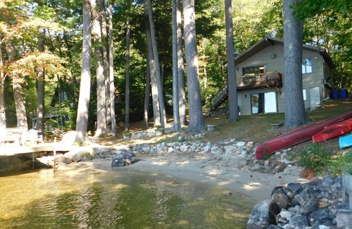 ** FALL WEEKS NOW ON SPECIAL ** Welcome to your dream vacation spot: a charming cottage nestled in a serene lakeside neighborhood on Long Lake in Naples, Maine. This well-furnished cottage offers stunning views of the lake and is conveniently located within walking distance to the Naples Causeway. The main level features a recently renovated galley kitchen that overlooks the lake and an open floor plan that allows guests to gather in the kitchen, family room, and deck areas. The walkout basement features a separate living area that provides easy access to the lake and another great spot to unwind, and the newly added half bathroom adds to the convenience. This lakefront retreat is stocked with all the comforts of home, including a hammock, swing, fire pit, kayaks, and a canoe. The natural setting, with trees and greenery at the boundaries, offers a serene escape from the hustle and bustle of everyday life. The beach is sandy with a shallow entry, perfect for water play. The dock and mooring can accommodate up to a 24-foot boat, and 2 kayaks and 1 canoe are provided for more adventures! With over 40 miles of boatable waterway, this property offers a perfect opportunity to create lifelong memories with your family!