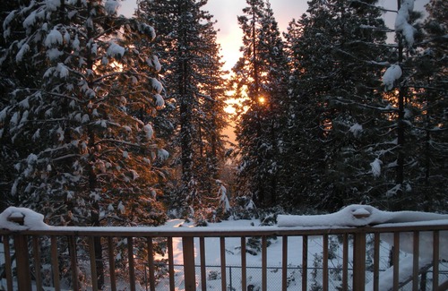 Come stay at a gorgeous 4 bedroom , 3 bath house with 2300 sq ft. Resting on 2.5 acres. Brand New finished downstairs bedroom and bathroom! A large home with Master Suite, plus two bedrooms with a queen sized bed in each and a very large full bath. Huge living room with big screen TV and satellite, lots of seating; cozy fireplace with large comfy chairs. Spacious dining room with seating for 10. Large deck with retractable shade and BBQ. Downstairs boasts 3 beds, a queen, full and twin, along with a TV, a new downstairs bathroom! A fenced in yard with children's play set. Access to acres of forest, with lots of trails for hiking and biking! Use this cabin as a departing point to explore the wonders of the Sierras including