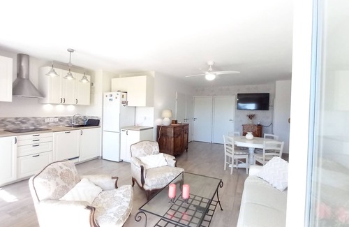 Comfortable new T3 15m² south-facing terrace Air-conditioning Swimming pool Basement box is located in La Londe-les-Maures. Comfortable new T3 15m² south-facing terrace Air-conditioning Swimming pool Basement box provides accommodation, featuring Air Conditioner, TV, Wheelchair Accessible, among other amenities. This Apartment features Air Conditioner, TV, Wheelchair Accessible, to make your stay a comfortable one.