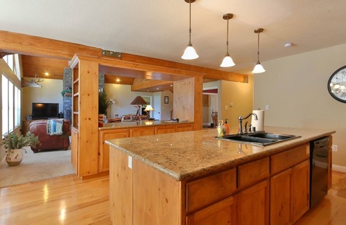 This is a destination for any season. There is snow in the winter months with a ski resort and snow parks within 30 min. Shaver Lake is approx 5 miles away for fishing, skiing or other lake activities. 14 guests can enjoy being together indoors or outdoors. This is a multi level space with staircase access. It is comfortably furnished, exceptionally clean and stocked for short or long term renters.