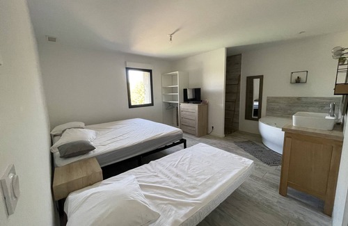 Comfortable villa is located in Vendres. Comfortable villa provides accommodation, featuring Private Pool, Bedding/Linens, Fireplace/Heating, among other amenities. This Villa features Private Pool, Bedding/Linens, Fireplace/Heating, to make your stay a comfortable one.
