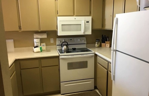 * Fully equipped kitchen with dishwasher, full sized stove and oven, microwave, refrigerator/freezer