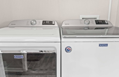 Two bathrooms keep teeth-brushing, hair-combing, post-beach showering, and overall priming flowing nicely. Will you speed through a shower, or opt for a relaxing soak in the tub?