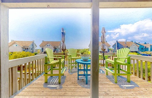 This picturesque beach house is the perfect escape from the humdrum of everyday life. Retreat to lush greenery, white sand, and emerald waves crashing as you collect shells, catch rays, and learn to paddleboard or surf. Tour the area and discover delightful attractions to visit, like the Historical Society of Topsail Island, Missiles and More Museum, and many local eateries and shops. Cool off in the sparkling community pool for some much-needed you-time.