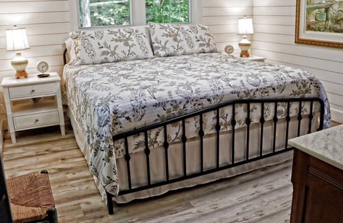 The Cottage is completely renovated throughout with new appliances, furniture and beds. The cabin includes washer and dryer, dishwasher, and extremely well equipped kitchen to make your stay as comfortable as possible. Over 1 acre of privacy with a firepit and a Weber Gas Grill. The screened front porch has a cozy swing to relax on. High Speed Wifi and 2 Smart TV's with YouTube TV subscription included.