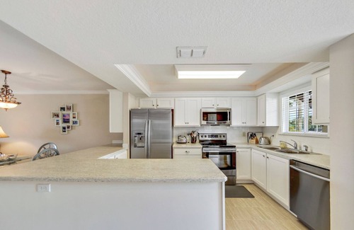 The master bedroom also has a panoramic view of the intracoastal, sliding glass doors to the porch; 60 inch LED smart Samsung TV; king size adjustable bed with dual controls. Master bathroom with walk-in shower is off master bedroom separated by a large walk-in closet, stacked washer/dryer and utility sink. Second bedroom adjoins full bathroom and a pocket door creates its own private suite. Guest/2nd bedroom also has a 55 inch LED Visio smart TV, desk, 4 in 1 function copy/fax/scan machine.
