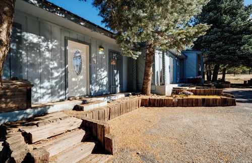 The sunroom has a full-sized futon which sleeps two, as well as additional seating and a hot tub (included with your rental) with a view of Wheeler Peak through the windows. There is also a small deck accessed through the sunroom.