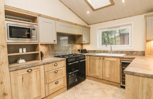 The living areas in this single-storey lodge consist of an open-plan kitchen, dining area and sitting area with an electric Range oven, gas hob, microwave, fridge, freezer, dishwasher, wine cooler, TV, and electric fire. The bedrooms consist of a king-size with en-suite and TV, and a twin with TV, along with a bathroom. Outside there is an enclosed wrap-around veranda with decking and furniture, and off-road parking for two cars. One well-behaved dog welcomed, but sorry, no smoking. You'll find a shop in 0.9 miles, a pub on-site and Pine Lake in 1.4 miles. WiFi, fuel, power, bed linen and towels are all included in the price. Coniston View 9 is an idyllic location to explore the coast and country of Lancashire. Note: There are steps to the exterior of the lodge.