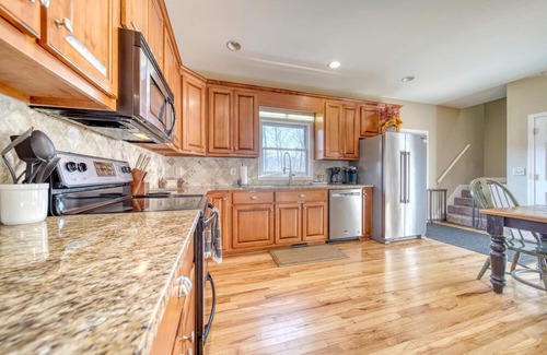 Descending to the lower level, you'll discover a welcoming bedroom adorned with two queen-sized beds, a convenient kitchenette for preparing snacks and drinks, a full bathroom for added convenience, a spacious living room area ideal for relaxation, a dedicated eating area, and even a pool table for hours of friendly competition and entertainment.