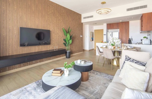 Experience modern luxury in this elegant 2-bedroom apartment, ideally located near the vibrant La Mer Beach!