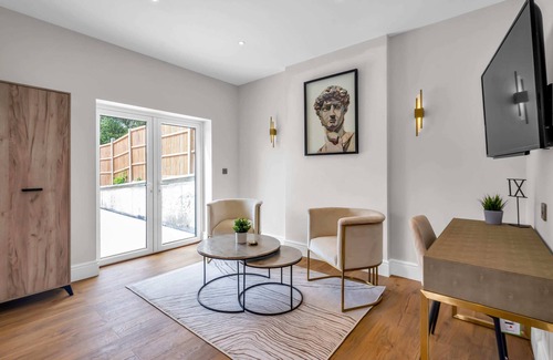 Contemporary 3BR duplex garden apartment is located in Haringey. Contemporary 3BR duplex garden apartment provides accommodation, featuring Kitchen, Laundry, TV, among other amenities. This Apartment features Kitchen, Laundry, TV, to make your stay a comfortable one.