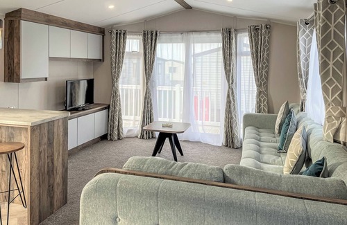Contemporary caravan with one double and one twin. Open plan lounge/dining area. Pets - please add upon booking.. Nestling on the coast between the Cambrian Mountains and Cardigan Bay, this stunningly situated park unites a tranquil beach-front setting with a wealth of excellent facilities. Perfect for relaxing with the family and enjoying all that glorious North Wales has to offer.