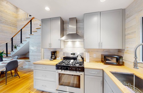Kick back in the open living area, where a woodstove provides a cozy ambience for movie nights. Upstairs, settle into the furnished loft with a mug of hot tea and a good book on rainy or snowy days. A private washer/dryer and fast WiFi add convenience to longer stays.