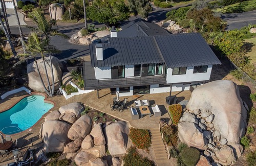 Immerse yourself this peaceful environment with spectacular views of undisturbed natural landscape and picturesque Lake Hodges. Giant granite boulder on the property and around add to the unique feeling that you are somehow embedded in the wilderness. While you soak up the sun and the cool breeze, enjoy the comfort provided by a high-end modern lodge with all the amenities you would need during your stay.