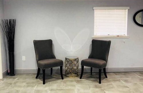 High Speed Wi-Fi, 60 inch smart TV, Apple TV, Hulu, Netflix, Amazon Prime, All the comforts of a home. Fully stocked Kitchen for cooking & Baking needs. Patio with eating area, outdoor table and BBQ.