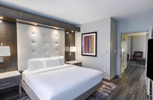 We take great pride in providing the best possible service and making you feel welcome. Enjoy your spacious suite that features all the comforts of home. Additional amenities include a wet bar with a refrigerator, microwave, coffeemaker, and a 49-inch TV. Take time to visit our facilities and amenities, such as the onsite restaurant and bar, fitness center, meeting rooms, business center, indoor pool and hot tub, and more! Miscellaneous fees may be subject to additional costs after booking.
