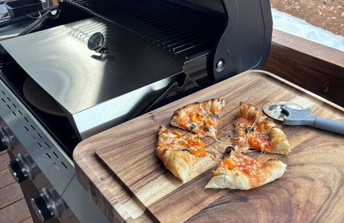 BBQ with pizza oven attachment & fire table – an outdoor culinary experience.