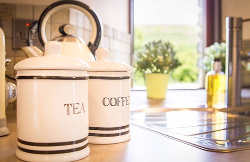 Coomb View offers contemporary open plan living including a Fully Fitted Black High Gloss Kitchen complete with Island, Dining and Living area for four guests on the first floor to take advantage of the stunning rural views. The Living Area is furnished with leather sofas, coffee table and a 50" TV with Google Chromecast so our guests may stream channels such as Netflix through their own account, DVD and CD Player for the home entertainment of our Guests.