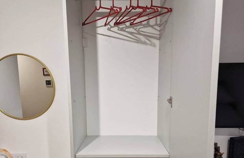 We are offering you a small business studio intended for short stays. It does not have a fully equipped kitchen, but it has basic equipment. Sleeping quarters with shower, well equipped for work, with excellent internet (100mb download). 32" TV with 300+ cable TV channels, air conditioning, central heating during winter, small table for laptop. And last but not least - hairdryer and iron.