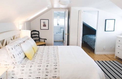 Ideally situated, this home is within easy walking distance of the Drake Devonshire, area restaurants, grocery store, the local park, Wellington Beach and a short drive to Hillier Region wineries. This makes it a great spot for small families, romantic getaway weekends or girl's weekends with friends. Corner Haven is comprised of a Main unit and an adjoining Suite sleeping a total of 7 guests and is ideal for stays with multiple generations that allow for privacy and time together too. Each unit has a separate entrance and is also connected by a lockable door inside so you can access both sides from inside the house. Preference is given to parties wishing to rent the property as a whole. If you wish to rent either unit separately, click the Related Property links at the bottom of the page for complete info. Corner Haven - Main Corner Haven Main is an open concept 2-story unit with lots of natural light and spacious rooms, perfect for a retreat in Prince Edward County. Sleeps 4 guests maximum.