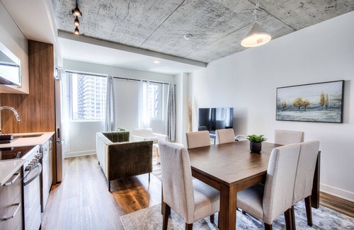 You'll love the unbeatable location of my apartment in the heart of the city, with a fantastic view! Whether you're traveling for work or leisure, my apartment welcomes all solo wanderlust adventurers, couples, and work travelers visiting the city. Enjoy fast Wi-Fi, a fully equipped kitchen and bathroom, and fresh linens, all professionally cleaned for your convenience. My stylish apartment also offers laundry facilities and easy access to SAQ, Adonis, Alexis Nihon, and many great restaurants in the area. Experience total style and full function at a great value.