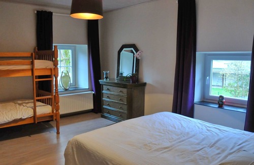 An elegant 3-bedroom holiday home located in the small village of Érezée, it can accommodate 8 people and is ideal for a group or families with children. There is a sunny garden, a terrace, and a barbecue to enjoy the holiday. The surroundings are peaceful and relaxing and you can also enjoy swimming in the public swimming pool at 15 km. Supermarket is very near at 100m and gives you all your basic shopping in a short distance. The holiday home has a large living room with billiard, TV, computer games, and dining table. The kitchen is modern and well equipped. You can sleep in the cozy bedrooms with single beds, double beds, and a bunk bed. Terrace with barbecue and the garden with furniture offers an ideal spot to enjoy and have fun with the family. You may request for a cot and a high chair for a small fee. Free WiFi and parking are also provided. There is excellent connectivity with public transport at 12 km. Check-in is between 4-5 pm and check-out is between 9-10 am.