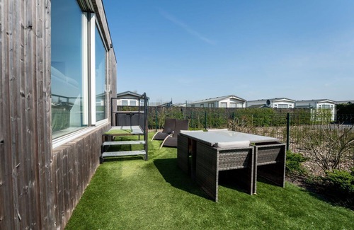 "New Dahlia 17", 3-room chalet 44 m2. Comfortable and modern furnishings: open living/dining room with dining table, international TV channels and air conditioning. Exit to the terrace. 1 double bedroom with 1 double bed (160 cm, length 200 cm), hand-basin and shower/WC. 1 double bedroom with 2 beds (80 cm, length 200 cm), hand-basin and shower. Open kitchen (dishwasher, 4 induction hot plates, toaster, kettle, electric coffee machine, combination microwave). Heating. Terrace furniture. Facilities: hair dryer. Internet (WiFi, free). Parking (1 car). Please note: non-smoking house. Maximum 1 pet/ dog allowed. Smoke alarm, fire extinguisher.