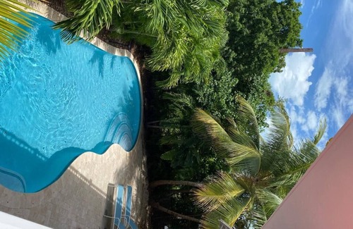 The tropical garden offers a nice intimacy, it is pleasant to enjoy the pool and the tiki bar area hidden from neighbors.