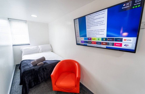 Additionally, there is a free car park situated right opposite the accommodation, ensuring convenient parking options. Moreover, the Selly Oak Train Station is within walking distance, allowing you to reach the city center in under 10 minutes.