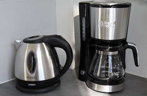 The kitchen is equipped with an oven, a stovetop, and a refrigerator, as well as a coffee maker, an electric kettle, and a microwave. Connect to the free WiFi, or get cozy in front of the Smart TV. Bathroom amenities include towels, toilet paper, and soap. Other amenities at this 1-bedroom, 1-bathroom rental include bed sheets, a desk, heating, and a dining table.