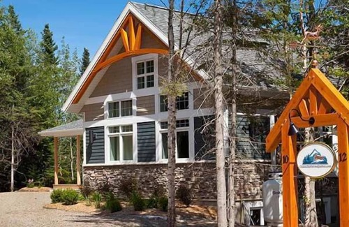 This chalet is a luxury four season vacation rental within minutes of the highly sought after destination of Le Massif de Charlevoix, in Quebec, CANADA. The chalet is our expression of what luxury chalet in Quebec should embody. It is an expansive 5500 sq. ft 5 bedroom and 4.5 bathroom + studio (continued) 6th bedroom and 5th bathroomvacation home with magnificent vaulted ceilings accented by contemporary timber beams. This chalet has an open concept floor plan with expansive south-facing windows that offer bright, vivid sightlines of the natural beauty of the surrounding mountain forest. We feel a chalet in Quebec should be in harmony with nature, and blend into the regional landscape. Therefore, this chalet decor is dominated by earthy tones, with hardwood floors, slate tiles and granite counters bringing out beautiful hues of blues and browns. It is nestled amongst the diverse trees of the local boreal forest, with multiple decks and an outdoor covered porch area with a spa, allowing for year-long soaking after a long day of play while exploring the Charlevoix region. This chalet is uniquely designed to meet your vacation and weekend housing needs. This chaet and studio offers 5 bedrooms (2 kings, 3 queens, 2 sofa beds) withtwo spacious great rooms, each with cozy fireplaces. A large dining room with table for 14 complements the gourmet kitchen.The Studio is a true Master Bedroom in every sense. It is a unique getaway that provides adults a more private retreat, well equipped with a king bed, full living room (1 sofa bed), ensuite bathroom, wet bar (fridge, sink) and private deck. This chalet offers ample parking and heated storage space for all your ski and snowboard equipment, along with all the amenities you would expect from a luxury vacation home The signatory of the contract must be 30 YEARS OLD and over.