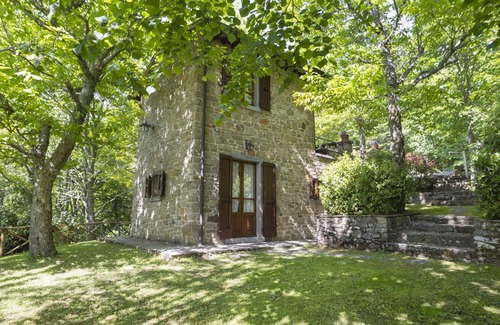"rustico" cottage "Cottage Contadina", 800 m a.s.l.. 6 km from the centre of Cortona, in a secluded position, 30 km from the lake, in the woods. Private: property 1'000 m2 (fenced), terraced garden trees, natural garden, meadow, swimming pool (above ground) (6 x 3 m, seasonal availability: 01.May. - 30.Sep.). Outdoor shower, terrace (30 m2), garden furniture, pool maintenance by the owner/gardener. 3 km long motor access (500 m via unmade road, mountain road). Stepped path to the house. Parking at the house at 100 m. Shop 4 km, supermarket 5 km, railway station "Castiglion Fiorentino" 15 km, bathing lake "Lago Trasimento" 30 km. Golf course (9 hole) 20 km. Nearby attractions: Arezzo 32 km, Firenze 100 km, Siena 80 km, Perugia 40 km, Valdichiana Outlet Village 32 km. A bubble room is available in the garden upon request at check-in and payable on-site.