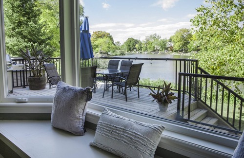 When entering the home, you'll be greeted by a large bay window overlooking spectacular 180° views of the water. The pond and surrounding area is home to a wide range of wildlife including snapping turtles, blue herons, beavers, foxes, blue jays, cardinals, swans, geese, and a frenzy of fish that can be seen jumping about at various points in the day. The pond also portages onto Lake Ontario. Starting your morning with breakfast al fresco will make you feel like you are far from the city as you are greeted by a chorus of birds.