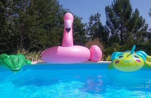 You have a private terrace and lots of space all around the house. You will find a pétanque court, a beach volleyball or badminton court, a superb swimming pool with a majestic view of the Valley. A vineyard next door.