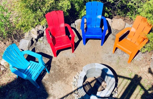 - Patio table that can accommodate more than 6 people and a deck chair, picnic table near the dock, bistro table and teak chair for a coffee overlooking the lake. :)
