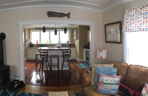 See and smell the ocean from the sunroom, the deck and all 3 bedrooms in this cottage high on a ledge in Lubec, Maine. Decorated with delightful nautical themes, enjoy a modern kitchen with a bar, a dining and living room, and walking into downtown!