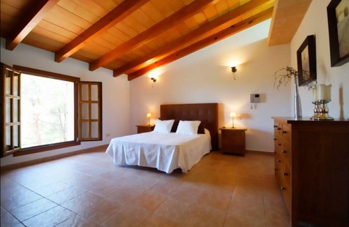 Rustic style house covered with stone and with large windows to enjoy the wonderful mountain views from any room. The house is composed of a basement with a car space and laundry area. The main floor has a large living room with fireplace, large sofas to relax, a large table for 10 people, with a large outdoor terrace equipped with an outdoor table for 8 people. The fully equipped kitchen with a dining area for 6 people and with an outdoor terrace overlooking the olive trees area and also equipped with an outdoor table for 8 people. On the same floor there is a full bathroom with shower and a double bedroom. On the upper floor we find a large suite with dressing room and a large bathroom with jacuzzi and shower, there are also two double bedrooms with an outdoor terrace and a bathroom with bathtub. In the outdoor area we find several garden areas, one of them where the pool is with a large solarium and 6 sun loungers, a large garden, an outdoor bathroom and a covered terrace equipped with a fridge, wood-burning oven and microwave, where you can spend pleasant evenings near the pool and its surroundings. The house has central heating and air conditioning in all rooms, kitchen and living room. It also has free wifi.