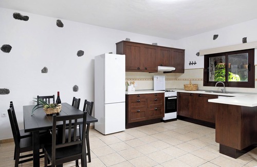 The holiday home Finca El Refugio is located in Teguise and offers you beautiful mountain views. The property, measuring 80 m², consists of a living room with a sofa bed for 2 people, a well-equipped kitchen, 2 bedrooms and 1 bathroom, accommodating up to 9 people. Additional amenities include Wi-Fi, television and a washing machine. A cot is also available. This holiday accommodation features a private outdoor area with a garden, two covered terraces and a barbecue.