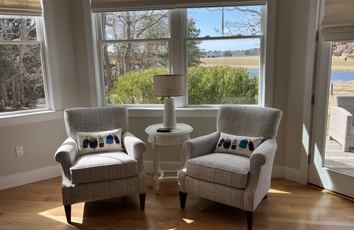 Peaceful four bedroom home in West Tisbury in private DEEP BOTTOM POND ASSOCIATION with landscaped lawn, pond views from almost every window, comfortable new upscale furnishings and teak deck furniture, Association tennis courts nearby, close to beaches at Lambert's Cove or South shore.Wifi and televisions, newly decorated, all amenities. Great family home for week or extended stays.Sleeps 8 including the fourth bedroom in the DEN with Queen sleep sofa.