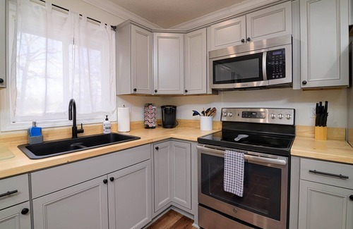 Step into a world of comfort and style in our inviting space. This thoughtfully designed home blends modern elegance with rustic charm, offering three bedrooms and two bathrooms for a spacious and restful retreat. The heart of the home features stainless appliances, making the kitchen a chef’s delight. Unwind in the cozy living room with modern furnishings, a queen sleeper sofa, and streaming TVs for your entertainment.