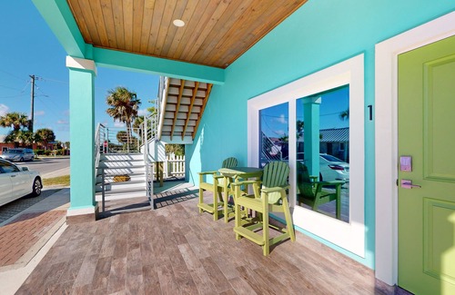 Grab your favorite travel partner and dive into seaside adventure at this first-floor Flagler Beach escape—crafted for couples who want fun, sun, and just the right amount of romance. Right in the heart of downtown, you’ll be steps from the beach and boardwalk, with pubs for bar hopping, galleries to wander, and quirky shops to poke around in together. Wake up early (or sleep in, no judgment) and catch an epic sunrise with coffee in hand, then spend the day chasing waves, exploring the farmer’s market, or road-tripping up the coast to Daytona or St. Augustine for new adventures.