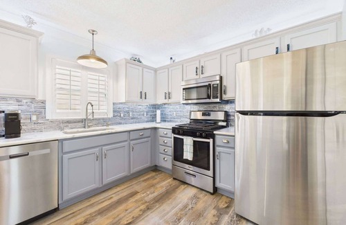 Welcome to your perfect getaway! This cozy and stylish 2-bedroom, 2-bathroom courtyard villa with a queen-sized sleeper sofa, nestled in the sought-after Belmont Villas of the Village of Belvedere, offers an exceptional short-term vacation experience. The home is thoughtfully designed for comfort, featuring spacious living areas and modern amenities.