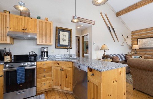 Relax in the cozy living room with breathtaking views from every window. The full kitchen is fully loaded and perfect for cooking when the snow is piling up outside and all you want to do is relax and watch! The master suite has a king bed, a private bath with shower, and a flat-screen TV. Bedroom 2 has 2 XL twin beds and a flat-screen TV. Full bathroom 2 has a shower/tub and single vanity.