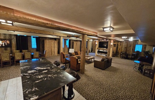 Welcome to Cowboy Lodge, your cozy retreat in Miles City! Nestled in a prime location, this charming retreat in the heart of downtown promises comfort and convenience. With over 2000 sqft of open living space,Feel at home with a fully equipped kitchen, oversized dining table for 12, 8 bed bunkroom, 2 large bathrooms,and ample gathering space, this unique space isperfect for large families or groups. Cowboy Lodge is your gateway to lasting memories and relaxation.