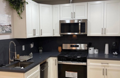 Unwind in our serene, stylish 1-bedroom suite, where comfort meets convenience. This completely private space features a cozy kitchenette and dining area, making it feel just like home.