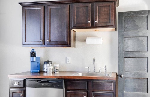 The fully equipped kitchen, complete with an oven range, Keurig, dishwasher, and thoughtful details, invites you to whip up culinary delights or savor your morning coffee in style.