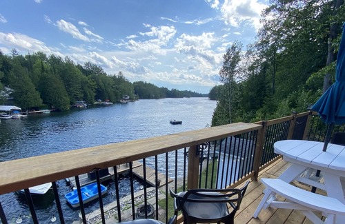Stunning view of Lac Dam, surrounded by mountainous landscape and lush forest. The lake is clean, fresh and full of wildlife to enjoy from our balcony or dock. Relaxation and fresh air are waiting for you!