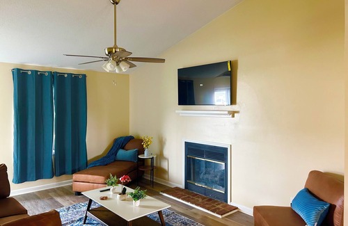 Stay comfortably in Greenville at this 2-bedroom condo. The bedrooms feature 2 king beds, perfect for a good night's sleep. With amenities like WiFi, a washing and dryer machine, a beautiful gated backyard with two separate patio sets and